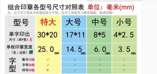 有一部分客戶需要的不僅僅是logo,而是需要順序印刷的編碼,例如“shuanglong-001”一直到“shuanglong-1000”這樣的話使用絲網(wǎng)印刷就明顯的不行了,我們不可能去做一千個(gè)絲網(wǎng)版。這種情況下我們一般使用活字碼人工進(jìn)行印刷,費(fèi)事費(fèi)力,并且印刷出來不是特別的規(guī)范美觀。如果同行有更好的方法請(qǐng)不靈賜教,我的QQ:764234081。下圖就是我們常用的活字碼的尺寸表。